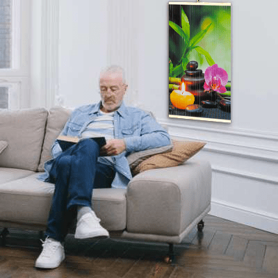 See mitte ainult ei paku meeldivat soojust igas ruumis tõhusalt ja kompaktselt, vaid annab sellele ka uue sära ja värvi oma trükitud raamita pinnaga, mis on pilgupüüdja igas ruumis. Soojenduspaneel on väga lame – nagu maal – nii et selle saab riputada otse seinale, kust see kiirgab mõnusat soojust.