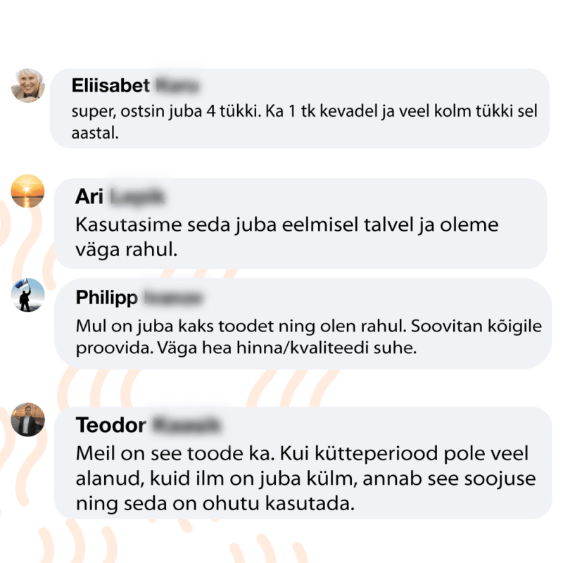 - Küttetemperatuur, mitte kõrgem kui 65°C